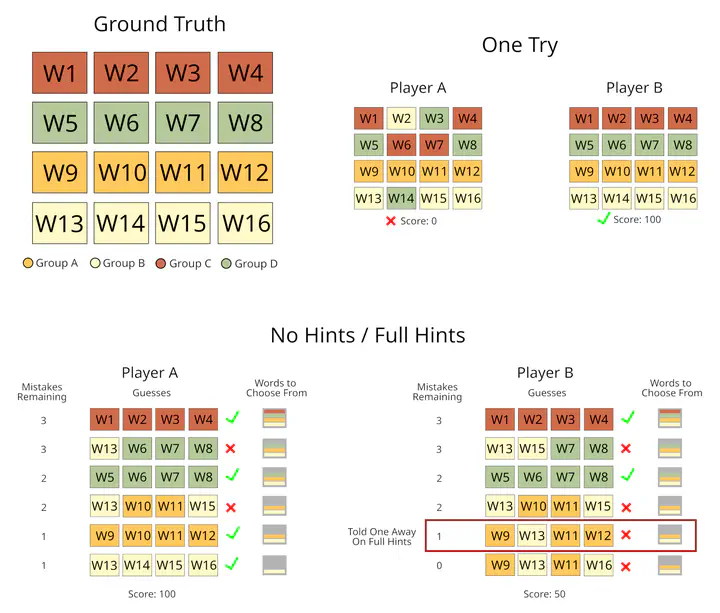 NYT-Connections is a dataset formed of daily Connections word puzzles published by the New York Times. Testing reveals that state-of-the-art LLMs still fall short of human benchmarks, with advanced prompting techniques like Chain-of-Thought Prompting offering diminishing returns as task difficulty increases.